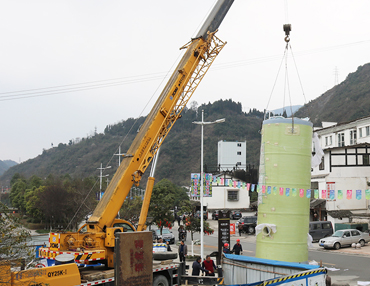 我司3.8米*19.8米大型玻璃钢一体化预制泵站安装